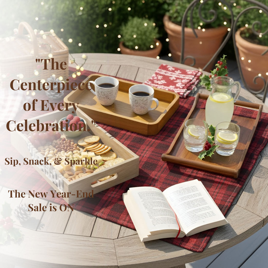 Wooden Serving Tray: Flat Tabletop Tea & Snack Tray