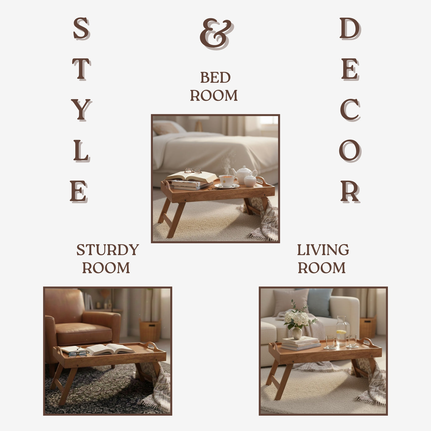 Wooden Bed Tray Table: Folding Breakfast & Serving Tray